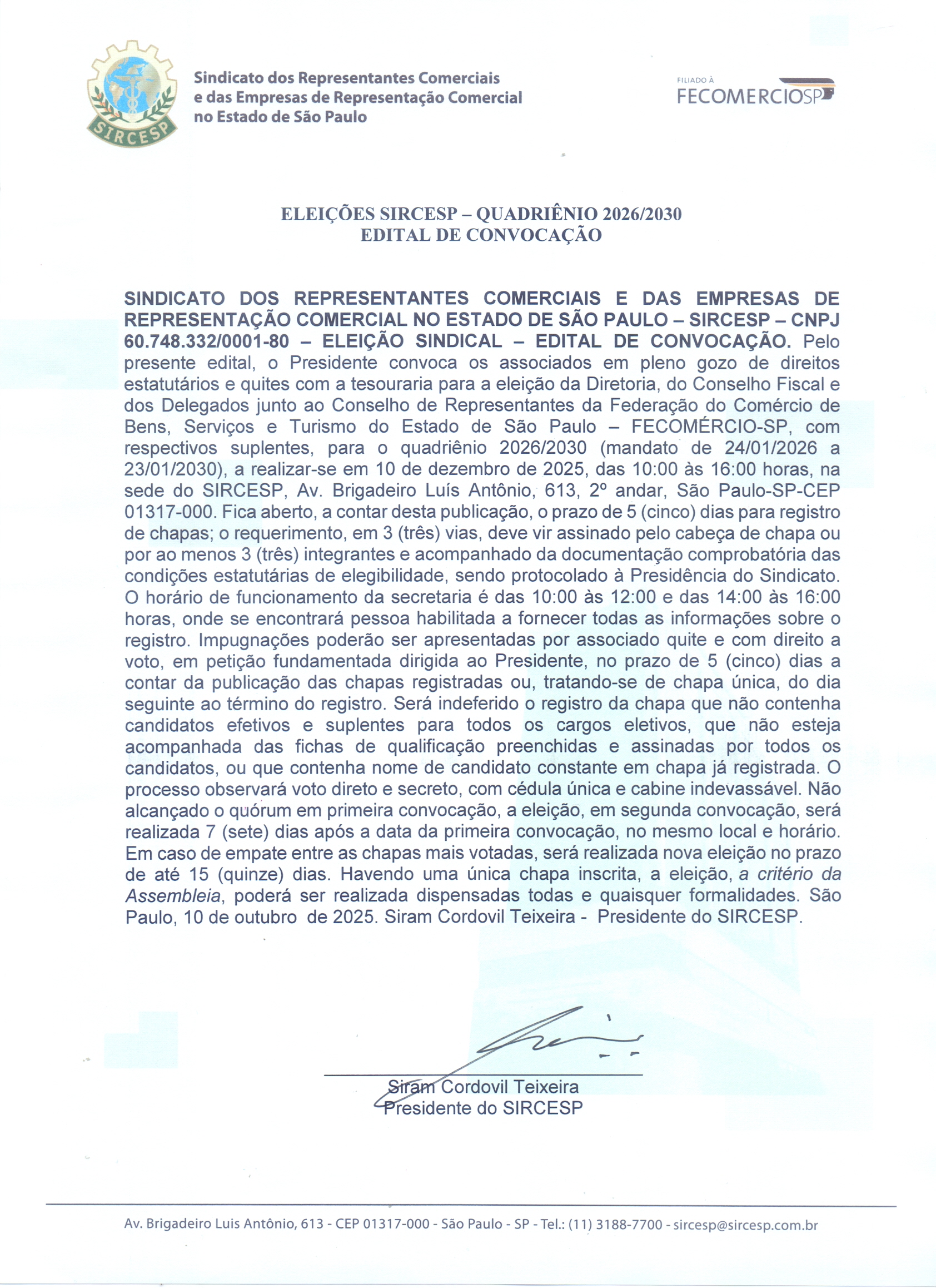E-mail: <a href=”mailto:sircesp@sircesp.com.br” data-mce-href=”mailto:sircesp@sircesp.com.br”>sircesp@sircesp.com.br</a>Horário de Atendimento: 9:00 às 18:00